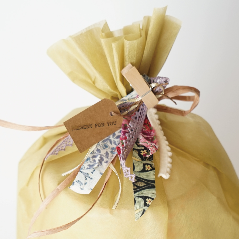 ファブリック製です。1点ずつ生地を巻いて制作しております。